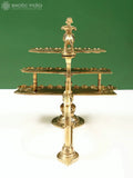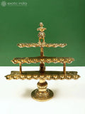 The 10" Aarti Diya with Handle is a ceremonial metal lamp designed for ritual lighting in home temples and devotional spaces. Crafted to be both functional and elegant, it features a shallow oil well and a sturdy, integrated handle that allows safe lifting during ceremonies.