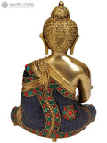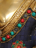 The 11" Tibetan Buddhist God Medicine Buddha Brass Statue | Handmade | Made in India is a brass statue that represents Medicine Buddha in Tibetan Buddhist iconography. This handcrafted sculpture captures a meditative seated pose and a serene expression, inviting quiet reflection in any space.