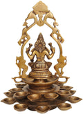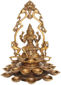12" Goddess Lakshmi with Multiple Diyas In Brass | Handmade | Made In India