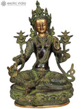 The 12" Green Tara Idol Seated Gracefully on A Lotus | Handmade Buddhist Deity Statues is a handcrafted spiritual figure in the Buddhist devotional art category. This sculpture captures Green Tara, a revered deity of compassion and swift aid, seated serenely on a lotus pedestal. Skilled artisans using traditional handcrafting methods give the form its refined presence, with a subtle patina that enhances the folds of the robes and the lotus petals.