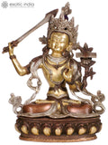 12" Tibetan Buddhist Deity Manjushri Brass Sculpture | Handmade | Made in India