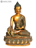 13" Medicine Buddha Idol Robe Decorated with Vishwa Vajra | Handmade Brass Statue