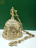 14" Ganesha Lakshmi and Saraswati Temple Hanging Bell in Brass | Handmade