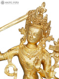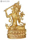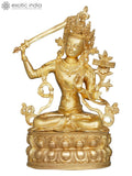14" Manjushri - Tibetan Buddhist Deity Upholder of the Double-Edged Sword | Handmade Brass Statues