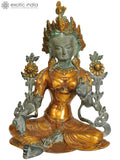 15" Tibetan Buddhist Deity Green Tara Brass Idol | Handcrafted Statue
