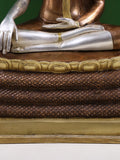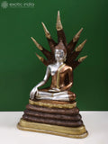 The 21" Buddha Under Serpent Muchalinda is a handcrafted sculpture in the Buddhist iconography category. It portrays Buddha beneath the hood of the serpent Muchalinda, a motif common in Indian sculpture that conveys protection and awakening. Rendered with measured proportion and a serene expression, the figure invites contemplative viewing. This piece is offered by Exotic India Art, a heritage brand known for authentic Indian art and handcrafted collectibles.