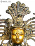 The 21" Dancing Shiva Brass Statue | Handmade Brass Sculpture | Made in India is a brass statue that presents Lord Shiva in the Nataraja pose, a celebrated motif in Indian sculpture. Cast in solid brass and finished by hand, it captures fine detailing from the ring of fire to the uplifted hand and drum. Artisans in India apply a subtle antique patina to enhance depth while preserving the sculpture’s warm bronze-gold tones.