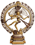 22" Lord Shiva Nataraja brass sculpture, the decorative sculpture category that presents the cosmic dancer in traditional Indian iconography. This piece is crafted to represent the iconic form of Lord Shiva as Nataraja, a figure central to Indian art for its dynamic movement and the balance between creation and destruction.