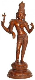 26" Ardhanarishvara (Shiva-Shakti) with Towering Jatamukuta brass statue that captures the Ardhanarishvara form, a revered motif in Indian sculpture representing the unity of masculine and feminine energies within a single figure.