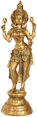 28" Standing Goddess Lakshmi Brass Statue | Handmade | Made in India