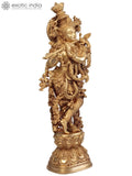 29" Tribhanga Murari (Krishna) Brass Sculpture | Handmade with Golden Vine Detailing