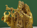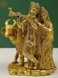 The 6" Small Gopala Krishna Statue with Radha in Brass is a brass statue and handcrafted sculpture that portrays Krishna as a playful child alongside Radha in a single graceful composition.