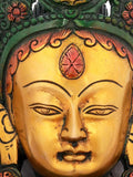 7" Goddess Tara Wall Hanging Mask in Brass | Handmade | Made in India is a brass wall hanging mask and decorative figure that presents the goddess Tara with quiet grace.