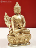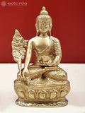 The 7" Medicine Buddha handcrafted brass statue from Exotic India Art, depicting the Medicine Buddha with a calm and compassionate bearing.