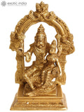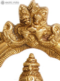The 8" Bhagawan Narasimha with Lakshmi Brass Statue | Handmade | Made in India is a brass statue in the devotional sculpture category. From Exotic India Art, a heritage brand known for authentic Indian art and handcrafted collectibles, it is crafted for sacred display. Cast in solid brass and finished with a warm antique patina, the piece highlights crisp reliefs and refined forms. Each element is shaped by hand by skilled artisans, ensuring a distinctive tactile quality and subtle variations that speak to its handcrafted nature. The composition pairs Narasimha, the lion man guardian, with Lakshmi, the goddess of prosperity, a traditional motif found in classical Indian sculpture and temple art. Suitable for home temple, meditation space, or as a decorative accent in living areas and shelves. It also makes a thoughtful gift for collectors of classical Indian art or devotees of devotional sculpture. Handcrafting, detailing, and artisanal quality are evident in every line of this statue.
