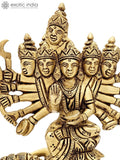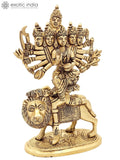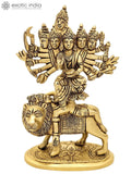 8" Kamakhya Devi brass statue in the devotional sculpture category. Cast in brass and finished with a restrained patina, the figure reveals careful study of proportion, drapery, and ornament. The piece embodies traditional temple art while integrating gracefully into contemporary settings. This work, offered by Exotic India Art, reflects careful handcraft and cultural lineage.