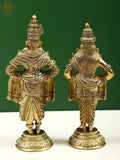 8" Lord Vitthal & Goddess Rukmini Brass Sculpture on Pedestal - Divine Home Decor