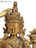 Crafted in brass by skilled artisans in India, this piece features a warm luster and refined detailing that bring to life the robes, posture, and symbolic attributes associated with Manjushri. Iconography commonly shows a sword of discernment and a sutra, illustrating the traditional symbolism of wisdom and clear vision.