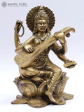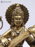 9" Devi Saraswati Brass Statue | Indian Handcrafted Idol