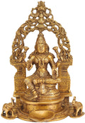 9" Enthroned Goddess Lakshmi with Puja Diya in Brass | Handmade | Made in India