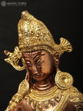 Handmade Indra brass statue and handcrafted sculpture that depicts the Hindu deity Indra, a prominent figure in Indian art and temple iconography. This piece is part of Exotic India Art and reflects a commitment to authentic Indian craftsmanship.