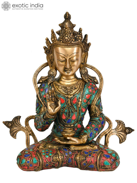 10" Buddhist Deity Crowned Buddha Preaching His Dharma | Handmade Brass Statue | Made in India