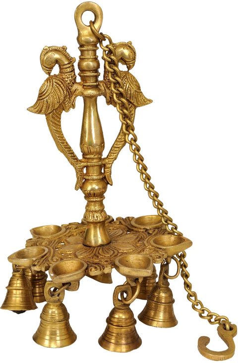 10" Mayura Hanging Lamp with Bells in Brass | Handmade | Made in India