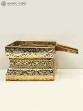 The 12" Abhisheka Patra for Abhishekam in Brass | Handmade | Made in India is a brass ritual vessel designed for sacred purification rites. Meticulously crafted by Indian artisans, this patra is built from solid brass and finished with a warm patina that highlights brushed and polished surfaces. The hand hammered edges and carefully formed lip reflect skilled metallurgy and attention to detail. Measuring about 12 inches in height, the vessel stands as a practical yet elegant centerpiece for a home temple, a quiet meditation space, or a shelf in a living or study area. In traditional practice, such vessels accompany ablution rituals where water is poured over idols or sacred stones during Abhishekam. This piece conveys the lineage of Indian metal craft and the artistry of making ritual objects by hand. Exotic India Art presents this piece as part of its collection of authentic Indian art and handcrafted collectibles.