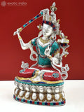 Ideal placements include a home temple, meditation corner, or shelf as a decor accent. It also serves as a collectible for enthusiasts of Indian metalwork and Tibetan art. Handcrafted in India and offered by Exotic India Art, this statue honors authentic artisanal tradition while inviting careful contemplation in everyday spaces.