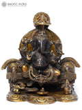 10" Chaturbhuja Lord Ganesha Seated on Throne | Brass Statue Dimensions
