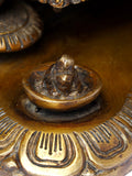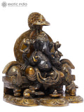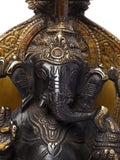 10" Chaturbhuja Lord Ganesha Seated on Throne | Brass Statue