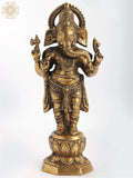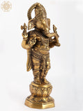 14" Chaturbhuja Standing Ganesha In Brass | Handmade | Made In India