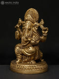 4" Small Chaturbhuja Blessing Lord Ganesha | Brass Statue