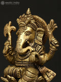 5" Small Chaturbhuja Lord Ganesha | Brass Statue