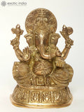 9" Chaturbhuja Lord Ganesha Brass Idol Seated on Pedestal