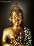 13" Inlayed Lord Buddha in Dharmachakra Mudra in Brass | Handmade | Made in India