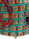 The 15" Lord Buddha In Dhyana Mudra In Brass is a brass statue in the devotional sculpture category, depicting Lord Buddha seated in the Dhyana Mudra, the gesture of deep meditation. Cast in brass and finished with a refined antique patina, the sculpture expresses the warmth of metal through careful hand finishing. Subtle modeling in the robes, serene facial features, and the precise positioning of the fingers reflect artisanal attention to detail. In traditional Buddhist art the Dhyana Mudra symbolizes concentration and inner balance, values echoed in the restrained form and serene presence of this piece. The careful play of light across the metal highlights the calm mood and dignified presence that such a gesture conveys. The statue is suited for a home temple, a dedicated meditation corner, or as a decor accent on a shelf or console. It also makes a thoughtful gift for art lovers and a refined addition to a collector display. As part of Exotic India Art, this work embodies the heritage of authentic Indian art and handcrafted collectibles.