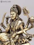 12" Superfine Eight Armed Goddess Durga (The Lion Goddess) | Brass Statue on Wood Base
