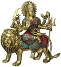 11" Goddess Durga Seated on Lion In Brass | Handmade | Made In India