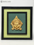 14" Wood Framed Goddess Durga Statue in Brass | Wall Hanging
