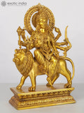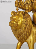 17'' Brass Eight-Handed Goddess Durga Idol Seated on Lion