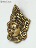 3" Small Goddess Durga Face | Wall Hanging is a compact wall hanging sculpture that presents the face of Goddess Durga in a serene and stylized form. From Exotic India Art, it belongs to a lineage of authentic Indian sculpture and devotional decor. The piece emphasizes clean lines and balanced proportions, with careful detailing of the eyes, brow, and crown to convey calm authority. In traditional Indian art, Durga is a symbol of strength and protective energy, and this representation distills that spirit into a small form suitable for intimate spaces. Ideal for a home temple or meditation space, it can also serve as a decor accent on a wall or as a thoughtful gift for collectors and devotees. Although compact, the work reveals artisanal craftsmanship through precise finishing and restrained detailing that invites close viewing and appreciation.