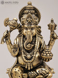 5" Small Superfine Ekadanta - The Lord Ganesha Seated on Lotus with Wood Base | Brass Idol Dimensions