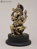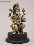 5" Small Superfine Ekadanta - The Lord Ganesha Seated on Lotus with Wood Base | Brass Idol
