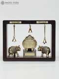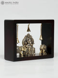 9" Superfine Vighnaharta Ganesha with Elephants | Wood Framed Brass Sculpture | Wall Hanging