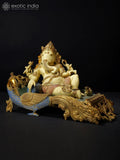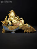11" Colorful Relaxing Lord Ganesha Brass Statue