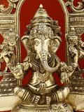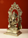 12" Brass Sitting Lord Ganesha with Kirtimukha Prabhavali