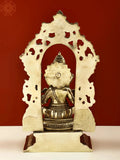 Crafted from solid brass, the figure is hand finished to reveal a warm patina that highlights fine lines on the trunk, seat, and gesture. The Kirtimukha Prabhavali, the ornate arch above the figure, is carved to emphasize balance and form, while the seated posture conveys a sense of stability and welcome.
