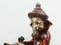 14" Lord Ganesha Seated on Rat In Brass is a brass statue and handcrafted sculpture that depicts the Hindu deity Lord Ganesha seated on his rat, a traditional pairing in Indian iconography.
