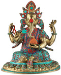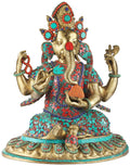 14" Nepalese Form of Lord Ganesha With Inlay Work In Brass | Handmade | Made In India